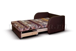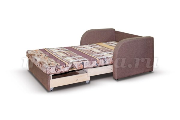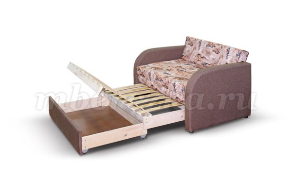 Каркас дивана имеет выкатной механизм на роликах, с помощью которого мини диван превращается в удобную кровать. Выкатные модификации имеют небольшие ящики для хранения вещей.