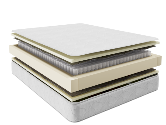 • Слой пенополиуретана повторяет форму тела, снижает ответное давление со стороны матраса, быстро восстанавливается