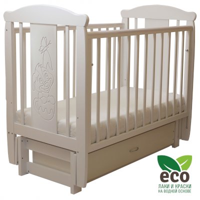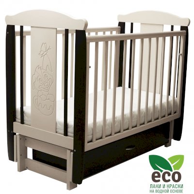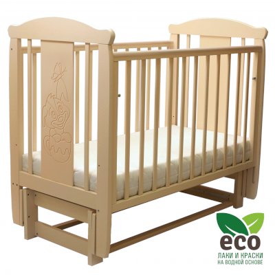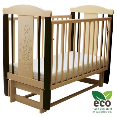 Кроватка "Соня 05" имеет механизм качания продольный маятник. Механизм качания фиксируется. Возможен вариант кровати с ящиком.