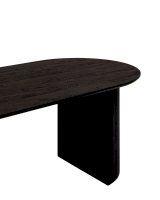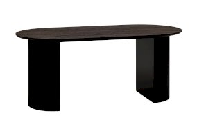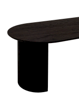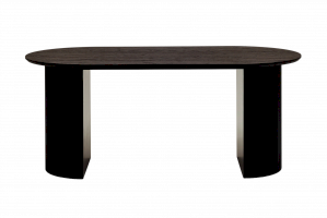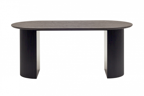 Столешница выполнена из прочного и долговечного МДФ. Темная поверхность столешницы гармонично сочетается с массивными ножками черного цвета. Простая овальная форма стола позволит легко вписать его в современный интерьер, стол украсит кухню, гостиную или современное кафе, ресторан. Опорные плиссированные ножки в лаконичном дизайне надёжно удерживают всю конструкцию и дополняют монолитный образ.