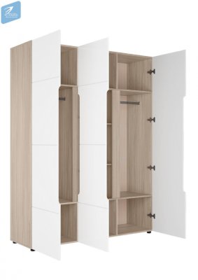 • Шкаф имеет две перегородки, комплектуется двумя штангами овальными металлическими и полками