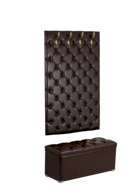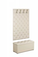 Элегантная серия мебели для прихожей  Мишель не оставит никого равнодушным. Мягкая стеновая панель  с каретной стяжкой Мишель  наполнит  уютом вашу прихожую, а пуф Мишель дополнит  интерьер и будет очень функциональным, сиденье пуфа открывается, под сиденьем расположена удобная ниша. Стеновая панель выполнена в классической каретной стяжке и имеет 2 размера ширины 75 см и 95 см, к данным стеновым панелям предлагается пуф, также  шириной 75 и 95 см. Можно приобрести как полный комплект так и каждый элемент отдельно.