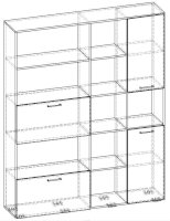 Применение задней стенки из ЛДСП (в ячейках с фасадами) позволяет использовать данный стеллаж для зонирования пространства (чтобы предотвратить опрокидывание, необходимо обеспечить крепление стеллажа к стене).