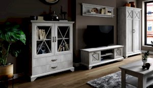 Распашной двухдверный шкаф выполнен в популярном стиле неоклассика – белые рамочные фасады с фактурой и рисунком натурального дерева, декоративные крестообразные накладки, фигурные ножки и карниз все это придает комнате элегантный и светлый вид. Вместительное отделение с полками поместит в себя одежду, коробки с обувью и головные уборы. Мебель выполнена из экологичных материалов.