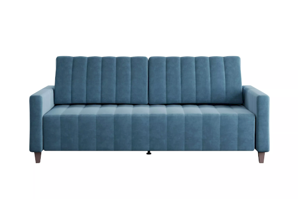 Диван располагает комфортным посадочным местом, а боковина оснащена современным решением для оперативной зарядки гаджетов. Вертикальная стёжка на приспинных подушках, сиденье и подлокотниках является изюминкой дивана.