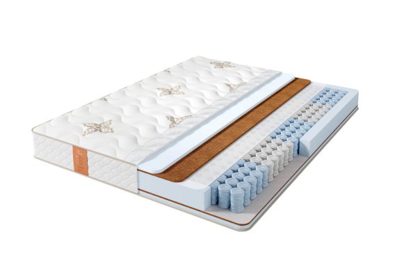В основе матраса блок независимых пружин Pocket 5 Zone, имеющий 5 зон различной степени упругости, плотностью 512 пружин на спальное место. Благодаря использованию проволоки различного диаметра каждая из зон обеспечивает правильную поддержку позвоночника и правильное распределение нагрузки. Кокосовая койра в комбинации с высокоэластичной пеной Foam обеспечивают среднюю жесткость матраса с обоих сторон.Чехол выполнен из приятного турецкого трикотажа с вискозой в составе, простеганного на объемном гипоаллергенном синтепоне.