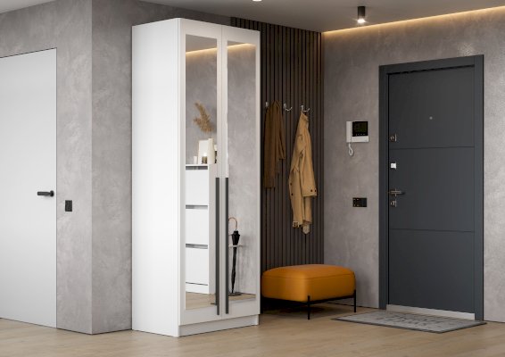 Дополнительно шкаф можно укомплектовать зеркалом и антресолью.