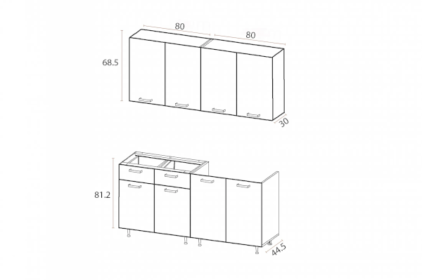 Высота верхних шкафов: 685 мм