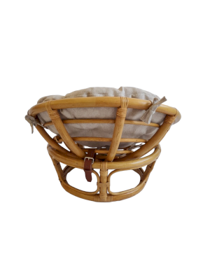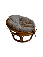 Стильное и удобное кресло Папасан из ротанга состоит из основания и чаши-кокона, которые скрепляются кожаными ремнями, подушка на завязках.