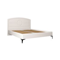 Кровать установлена на высокие ножки, что делает конструкцию лёгкой и воздушной, изголовье кровати декорировано пышным мягким элементом. Матрас укладывается на ортопедическое основание с гнутоклееными ламелями.