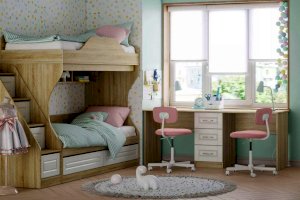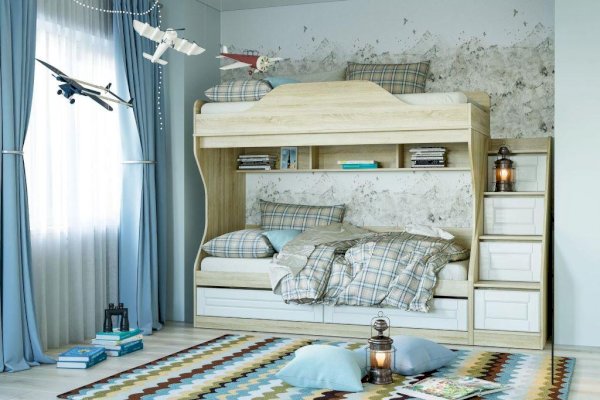 Двухъярусная кровать Оливия НМ 041.51 сэкономит свободное пространство в комнате, обеспечив спальное место сразу для двоих детей. Модуль оснащен книжной полкой и вместительными бельевыми ящиками, что позволяет использовать их в качестве дополнительного места для хранения вещей. Лестница, которая входит в комплект состоящая их четырех ступеней-ящиков дает дополнительное место для хранения для игрушек и детских вещей. Ограничитель без острых углов на верхнем ярусе, обеспечит ребенку безопасный сон.