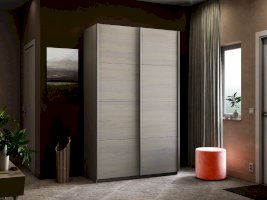 Серия «Прайм» отличается доступностью и функциональностью Навесные двери и лаконичная отделка фасадов создают прогрессивный дизайн. Подойдет тем, кто любит компактную и изящную мебель. Алюминиевые ручки и верхний ходовой профиль обеспечивают легкость и прочность конструкции. Многолетняя безупречная работа благодаря высококачественной немецкой фурнитуре Hettich. Прочная ПВХ-кромка толщиной до 1 мм защищает края от сколов и повреждений. Плавный ход дверей обеспечивает надежная система Hettich Top Line M. Дополнительно можно установить доводчики. Снаружи нет заглушек и винтов благодаря стяжечной системе крепления полок на флипперах, а корпус усилен эксцентриковыми стяжками. Навесные двери скрывают раздвижной механизм от глаз. Они надежно удерживаются в направляющих и не соскакивают. Каждая дверь поделена на 4 секции Секции расставляются в произвольном порядке, создавая новый дизайн фасада.
