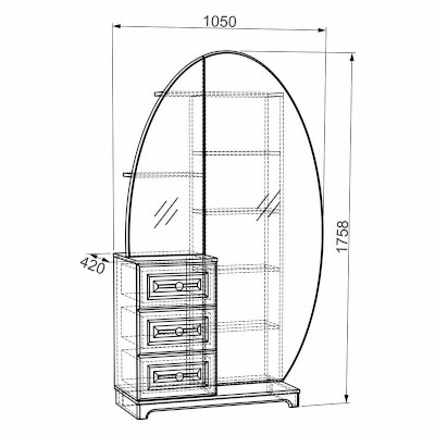 Шкаф комбинированный: Корпус – ЛДСП 16 мм, Фасады – МДФ с пленкой ПВХ и патиной, Кромка – ПВХ 0,4 мм Направляющие – шариковые Зеркало – 4 мм Ручки – фарфоровые Опоры – пятниковые.