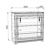 Комод: Корпус – ЛДСП 16 мм Фасады – МДФ с пленкой ПВХ и патиной Кромка – ПВХ 0,4 мм Направляющие – шариковые Ручки – фарфоровые Декор – кисти для штор Опоры – пятниковые