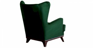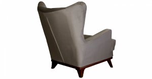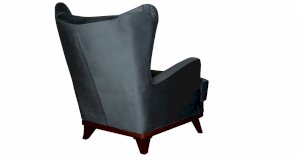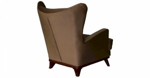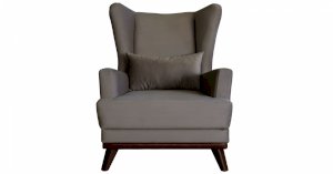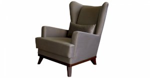 Высокая спинка с наклоном и мягкие подлокотники обеспечивают удобную посадку, дополнительный комфорт создает декоративная подушка. Царга кресла обтянута искусственной кожей в цвет опорам.