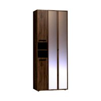 Nature 87 Шкаф для одежды и белья создаст все необходимые условия для хранения в прихожей верхней одежды и аксессуаров. В этом шкафу есть все необходимое для размещения верхней одежды: выдвижная штанга, верхняя полка, ряд регулируемых полок. Большая секция оснащена выдвижной штангой для развешивания пальто и курток на плечиках. Выдвижная штанга выдерживает вес до 10 кг. Один из зеркальных фасадов Контур открывается за ручку-петлю из черной экокожи, второй фасад - за раму. По желанию к модулю можно докупить Nature 94 Дополнительный модуль для Nature 87, который крепится под полку открытой ниши.