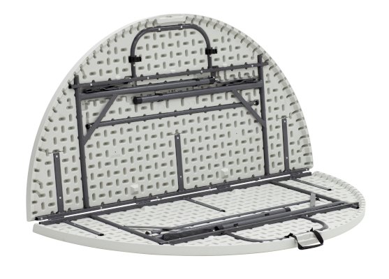 Стол круглый. Для каркаса используется стальная труба особой прочности 32*1 мм, а столешница, толщиной 5 см, выполнена из 100% не переработанного полиэтилена HDPE (полиэтилен высокой плотности). Считается одним из более безопасных видов пластика. HDPE пластик выдерживает высокие нагрузки, не трескается при ударной нагрузке, эластичен в диапазоне температур от –70 до +100 °С.