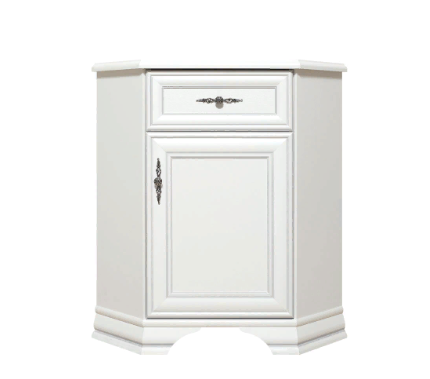 Тумба делится на два отделения, закрывающееся распашной дверцей, и выдвижной ящик.