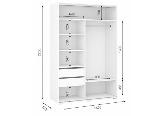 | Наполнение шкафа | выдвижные ящики / штанга |