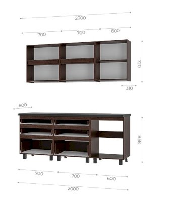 Каркас и ящики в цвете "венге", встроенный профиль, аксессуары - все элементы кухни дополняют друг друга, складываясь в единую композицию. Гармония тёмных оттенков также подчеркивает стиль "минимализм". Разнообразие текстур, фактур и декоров позволяет воплощать в жизнь самые смелые дизайнерские решения.