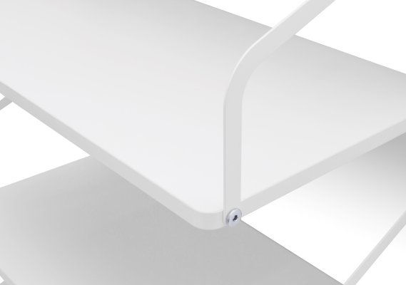 Стеллаж изготавливается из массива сосны, покрытого эмалью/лаком на водной основе, полки из ЛДСП. Полкодержатели металлические, покрыты порошковой краской.