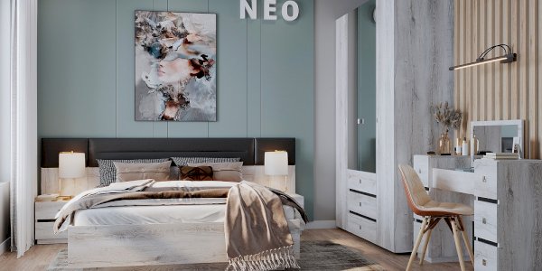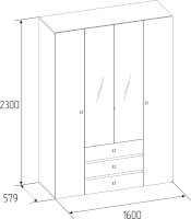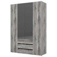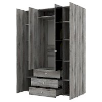 Распашной четырехстворчатый шкаф для одежды и белья Neo — практичная и функциональная система хранения в спальне. Шкаф отличает стильный дизайн, в облицовке использованы материалы трендовых цветов: Дуб Шавиниган и Антрацит. Лаконичные квадратные металлические ручки с гальваническим покрытием придают модели брутальный вид. Гардероб имеет классическое наполнение: два боковых отделения с полками для текстиля, центральное - с выдвижными ящиками на шариковых направляющих и отделением со стационарной штангой для плечиков. Дверцы центральной части шкафа оформлены зеркальным полотном, благодаря чему модель становится визуально легче, а комната выглядит более светлой и просторной.