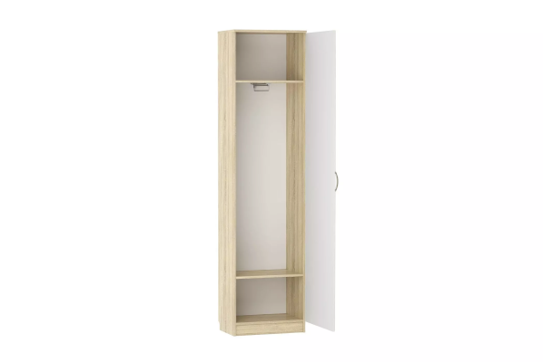 Одностворчатый шкаф Оливия НМ 014.71 Х не займет много места в детской, гостиной, спальне или прихожей. Выдвижная штанга обеспечит быстрый поиск нужного предмета гардероба. На антресольной полке удобно хранить негабаритную сезонную одежду, а нижняя полка лучше всего подойдет для хранения коробок с обувью. Для расширения функционала шкафа можно дополнительно приобрести комплект полок.