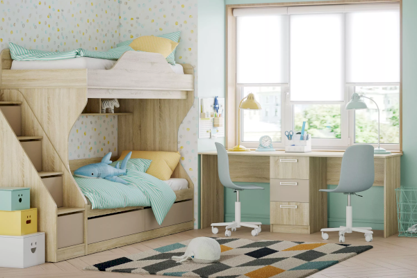 Двухъярусная кровать Акварель сэкономит свободное пространство в комнате, обеспечив спальное место сразу для двоих детей.