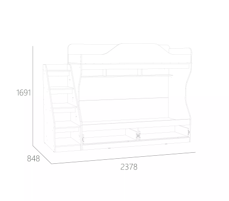 Модуль оснащен книжной полкой и вместительными бельевыми ящиками, что позволяет использовать их в качестве дополнительного места для хранения вещей. Лестница, которая входит в комплект состоящая их четырех ступеней-ящиков дает дополнительное место для хранения для игрушек и детских вещей. Ограничитель без острых углов на верхнем ярусе, обеспечит ребенку безопасный сон.