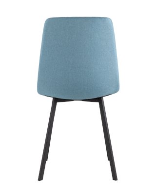 Классический обеденный стул без подлокотников на металлических ножках плоской формы. Внутренняя сторона сиденья и спинки украшена геометричной строчкой.