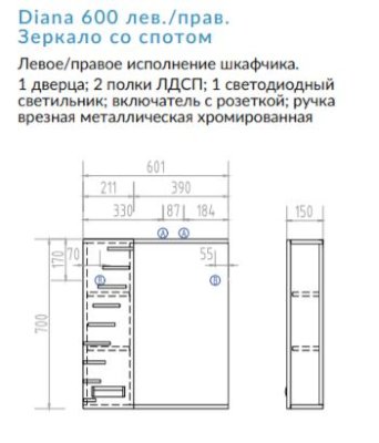 Зеркало Diana 600 со спотом (Виго) - за 8 588 руб. в Бердянске. Купите на сайте berdyansk.onlinemarketmebeli.ru или по телефону 8(800)505-30-63 уже сегодня! Уточнить наличие, комплектацию, актуальную цену можно бесплатно у менеджера ежедневно. Закажите Зеркало Diana 600 со спотом (Виго) до конца акции! Доступна покупка в кредит, рассрочку. Доставим со склада или на заказ.