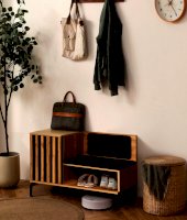 Тумба под обувь коллекции Либерти это не только стильный предмет интерьера, она удобна и функциональна. У тумбы есть место для сидения, а также закрытое и открытое отделение для хранения обуви и обувных аксессуаров. У тумбы высокие изящные металлические опоры высотой 150 мм, что облегчает процесс уборки. Контрастный декор на фасаде выполнен в едином стиле с другими элементами коллекции Либерти. Тумбу можно использовать как самостоятельный элемент, так и вместе с другими модулями, создавая единую композицию.