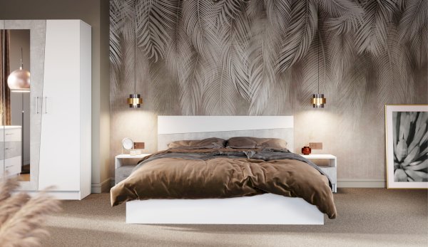 Прикроватные тумбы из ЛДСП с асимметричными скошенными линиями фасадов вносят свободу и движение в жилое пространство, делают интерьер более сложным и необычным. Нейтральные цвета декора универсальны для любого стиля интерьера. Прикроватные тумбы с ящиком на роликовых направляющих поместят в себя все вещи, которые важно иметь под рукой - телефон, любимая книга, стакан воды.