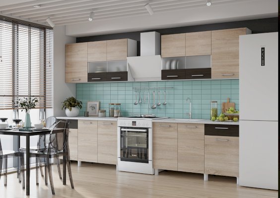 Объединяя два набора, размер кухни можно увеличивать и получать TREND 2600, суммируя наборы. Все кухни собираются в зеркальном исполнении.