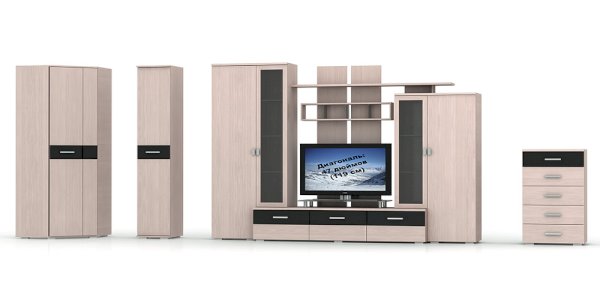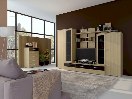 Андорра — это образец оптимального сочетания таких важных для современной мебели характеристик как: открытые стеллажи, закрытые системы хранения, шкафы с витринами.