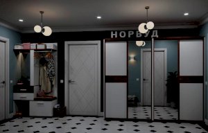 Небольшой шкаф-купе в прихожую с продуманным внутренним наполнением позволяет рационально использовать площадь небольшого коридора в квартире. В комплектацию шкафа входят: выдвижная штанга и регулируемые по высоте полки для одежды. Два фасада - зеркальный и глухой - перемещаются на стальной системе Найди, которая обеспечивает легкость открывания, плавность и бесшумность хода. Зеркальный фасад проклеен с обратной стороны защитной пленкой. Шкаф-купе создан на контрасте: белый корпус, белый глухой фасад и декоративная вставка и горизонтальные детали в декоре Орех Шоколадный, трек и профили цвета венге. Регулируемые опоры компенсируют незначительные неровности пола.