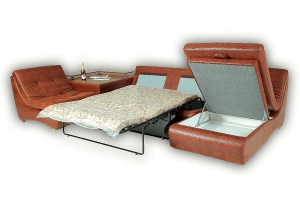Комплектация: Высокоэластичный ППУ, вместительный ящик для белья, полки, столешница, два вида подлокотников, возможно изменения размеров модулей.