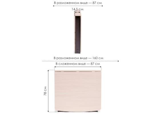Длина разложенного столика, мм 1600