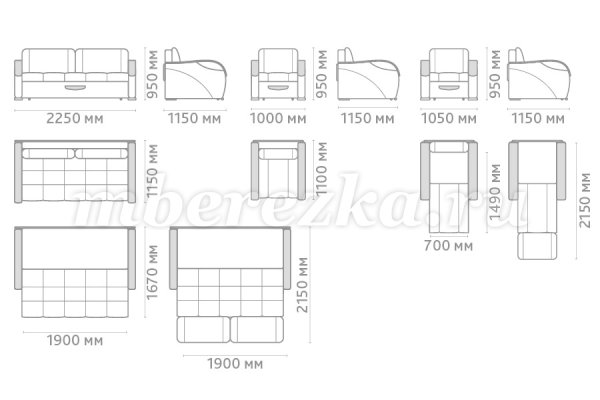 Размер дивана : 2250*1150*950 мм