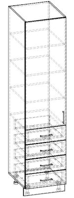 Пенал 1 дверный 4 ящика с полками 600 КП.005.600-01