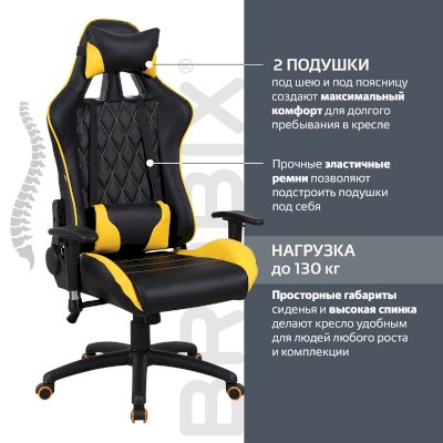 Просторные габариты сиденья и высокая спинка делают кресло удобным для людей любого роста. Сразу две подушки в комплекте - одна под шею, другая под поясницу помогут расположиться в кресле с максимальным комфортом. Благодаря эластичным ремням нижнюю подушку можно легко подстроить под себя.