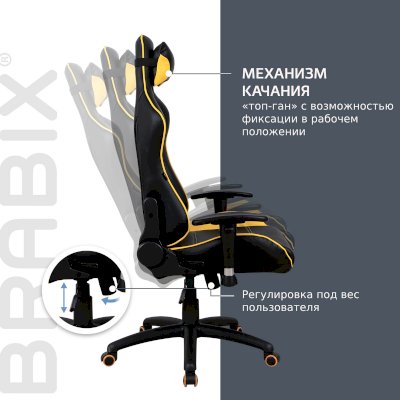 Модель оснащена механизмом качания «топ-ган» с регулировкой под вес пользователя и возможностью фиксации в рабочем положении.
