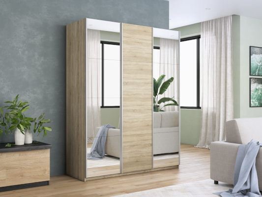 Шкаф-купе 3-х дверный Прайм Зеркало/ДСП/Зеркало (Е1) - за 67 104 руб. в Бердянске. Купите на сайте berdyansk.onlinemarketmebeli.ru или по телефону 8(800)505-30-63 уже сегодня! Уточнить наличие, комплектацию, актуальную цену можно бесплатно у менеджера ежедневно. Закажите Шкаф-купе 3-х дверный Прайм Зеркало/ДСП/Зеркало (Е1) до конца акции! Доступна покупка в кредит, рассрочку. Доставим со склада или на заказ.
