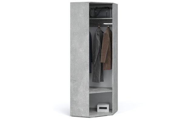 Шкаф позволяет рационально использовать пространство и будет хорошо смотреться даже в небольшой комнате, служит связующим звеном для составления угловой системы хранения. Внутри предусмотрены полки для белья и отделение с металлической овальной штангой. Идеально компонуется со всеми модулями системы Виола.
