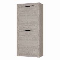 Двустворчатый распашной шкаф «Леонардо» с просторной антресольной полкой для хранения головных уборов, горизонтальной хромированной штангой для плечиков и нижней полкой, в которой удобно хранить коробки с обувью, выдержан в общей стилистики коллекции. Сборка универсальна.
