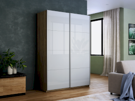 Шкаф-купе 2-х дверный Прайм Белое стекло/Белое стекло 1400х2300х570 мм Венге