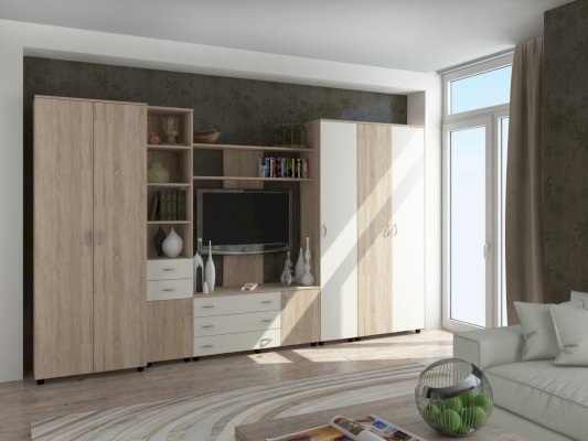 Данное изображение представлено в следующих цветах ЛДСП: корпус - Дуб Сонома, фасады - Дуб Сонома / Белый.