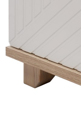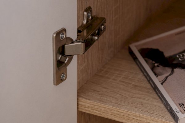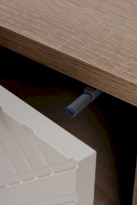 Данная модель имеет закрытую створкой нишу с двумя полками. Створка закреплена на петли с доводчиками для плавности хода и бесшумного закрывания. Для удобного открывания тумба оборудована механизмом «push-to-open».