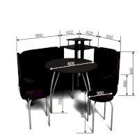 Оригинальный кухонный уголок Лотос отличается от других похожих кухонных гарнитуров. Он состоит из двух отдельных диванчиков и этажерки, заменяющей угловую мягкую часть. Круглый кухонный стол в отличие от других наборов мебели на металлическом основании как и два круглых табурета. Набор мебели для кухни включающий в себя большую прямую скамью,малую прямую скамью,угловую этажерку, стол на металлических ногах и два табурета на металлокаркасе. В прямых скамьях под сиденьями расположены ящики.