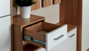 Интер – современная прихожая в стиле минимализм - минимум декора, максимум функционала. Компактная и вместительная, с небольшой глубиной – она поможет правильно организовать пространство в небольшом помещении. Прихожая включает в себя необходимые модули: вешалка с крючками, вместительные обувницы, выдвижные ящики для мелочей, зеркало и двухстворчатый шкаф с выдвижной вешалкой и полками. Модное сочетание нейтральных цветов дуба сономы и белого наполнит комнату теплым и мягким светом, визуально увеличит пространство. Прихожая подойдет тем, кто любит практичность и разумность. Хорошо сочетается с модулями системы Стелс.